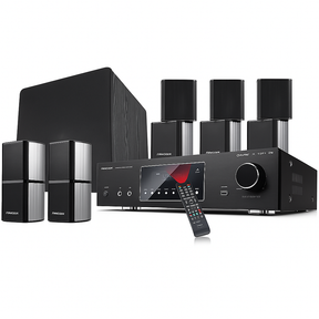 The Vespera Nova 5.1 Reference Surround System is designed for those who demand the best. This premium home theater package pairs a high-current AV receiver with five compact aluminum satellite speakers and a down-firing powered subwoofer. With HDMI eARC support, advanced room calibration, and high-resolution streaming, the Nova delivers breathtaking clarity, dynamic impact, and effortless control—perfect for movie nights, gaming, and music listening.