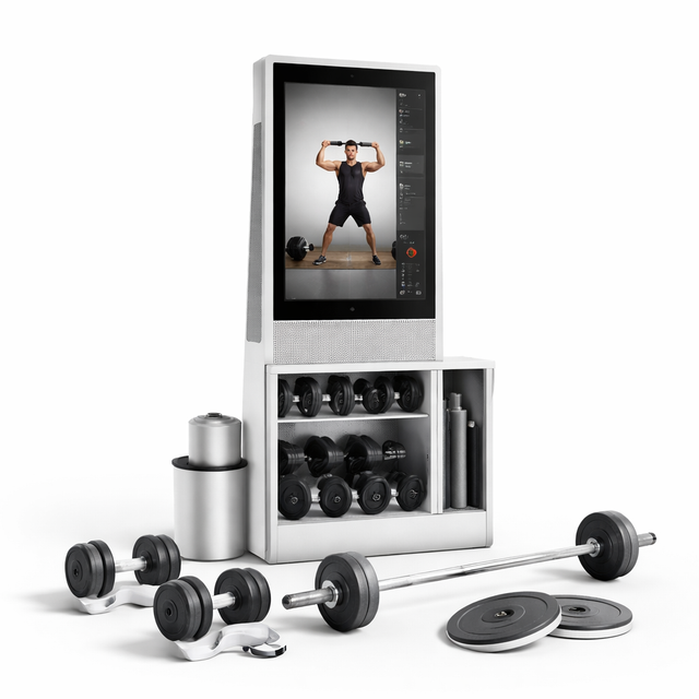 An all-in-one digital home gym system with AI motion tracking, guided workouts, and integrated fitness technology. Designed for modern homes and high-performance training, it blends virtual coaching, biometric feedback, and organized strength gear into a sleek vertical station.